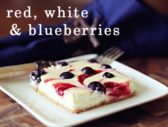 Since the juicy hamburgers and hot dogs are hard to resist on the Fourth of July, why not lighten up dessert by making these low-cal swirled cheesecake bars?