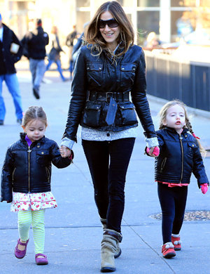 Sarah Jessica Parker’s 3-year-old twins have worn some pretty adorable outfits on their jaunts[(短途)旅行,游览] around their New York City neighborhood, but these new photos – of the girls and their fashion-forward mom wearing coordinating leather jackets – take it to a whole new level.