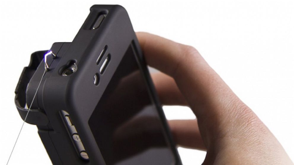 Concealed in the YellowJacket's $140 case is a built-in battery-powered stun gun that produces what the company describes as a "painful sting." Charge the case and press the activation button and you are able to shoot 650 kilovolts of electricity through someone's body. The case, which has been available for the iPhone 4 and 4S, is going to be available for the iPhone 5C and iPhone 5S in a couple of weeks for pre-order and then will ship in time for the holidays, according to company's co-founder and president Seth Froom.