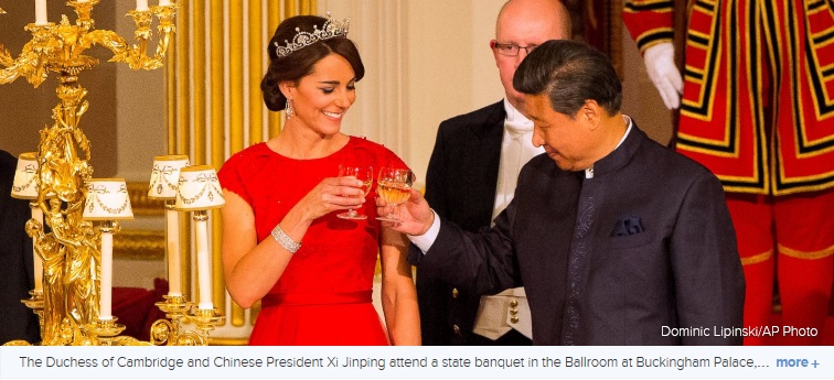 "Mr. President, the relationship between the United Kingdom and China is now truly a global partnership,” the Queen told guests. “We have much reason to celebrate the dynamic, growing economic relationship between our countries as well as our success in working together to address pressing international challenges.”