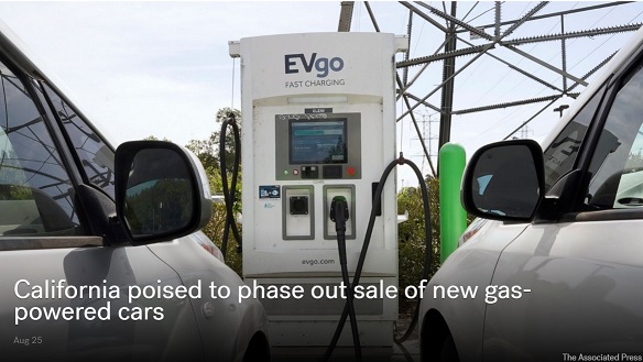 SACRAMENTO, Calif. -- California is poised to set a 2035 deadline for all new cars, trucks and SUVs sold in the state to be powered by electricity or hydrogen, an ambitious step that will reshape the U.S. car market by speeding the transition to more climate-friendly vehicles.