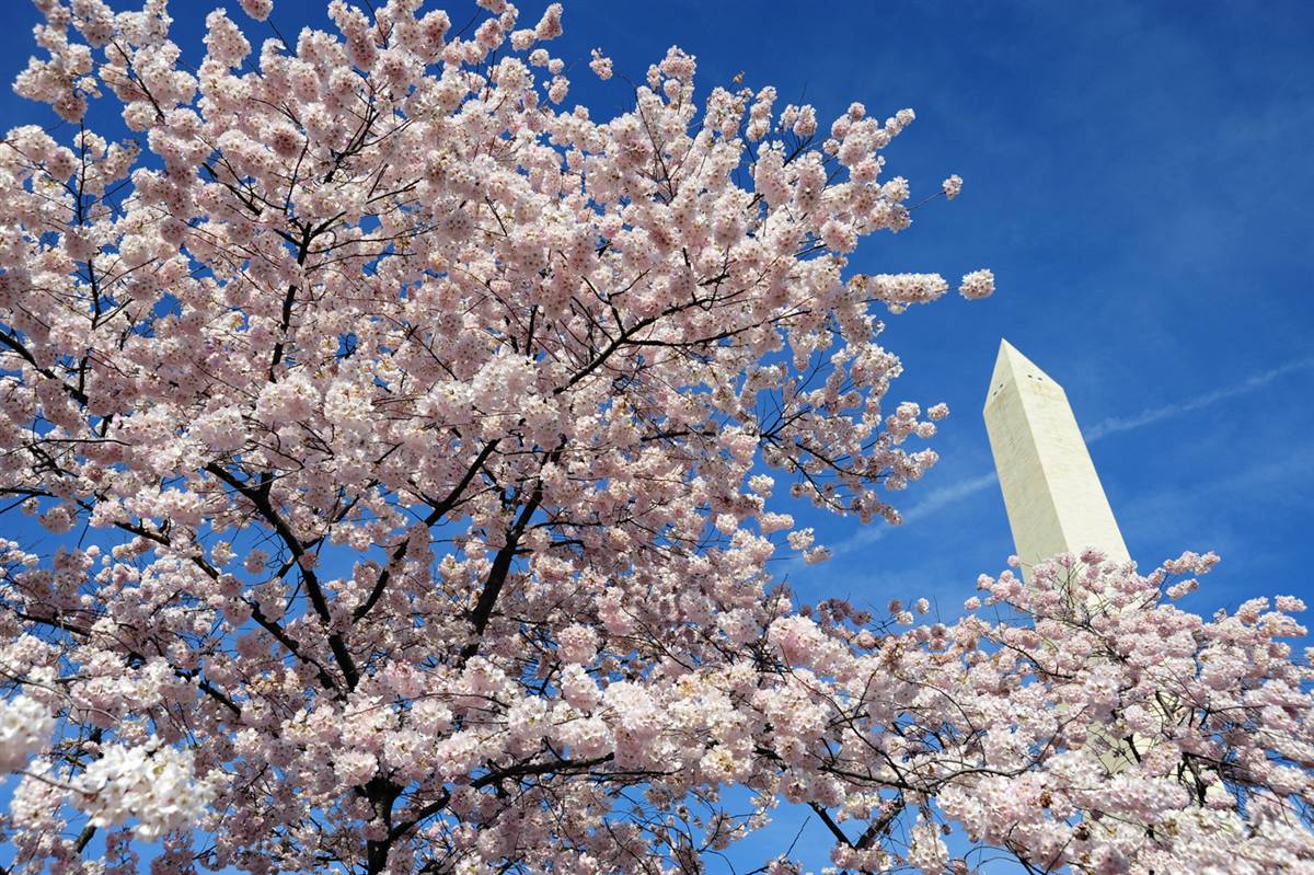 Cherry blossoms bloom near the Tidal Basin in Washington during the National Cherry Blossom Festival Monday.
