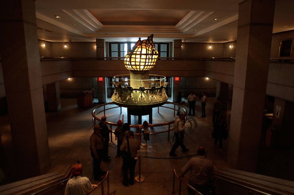 The original torch from the Statue of Liberty sits in a lobby at the entrance to the monument on Liberty Island. It was replaced with a gilded version in the mid-1980s.