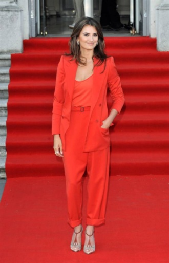 Who says pantsuits(长裤套装) are out? Penelope Cruz appeared as a lady in red at the London premiere(首映式) of her film, "Broken Embraces," in July 2009.