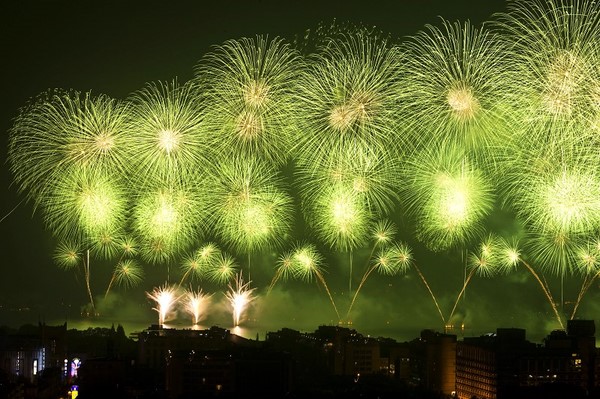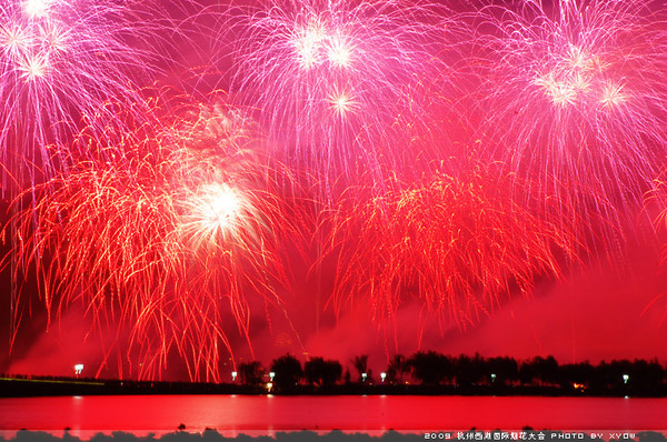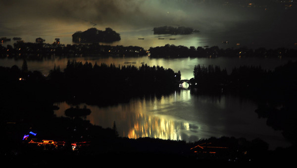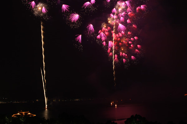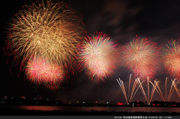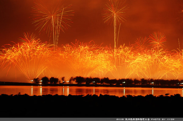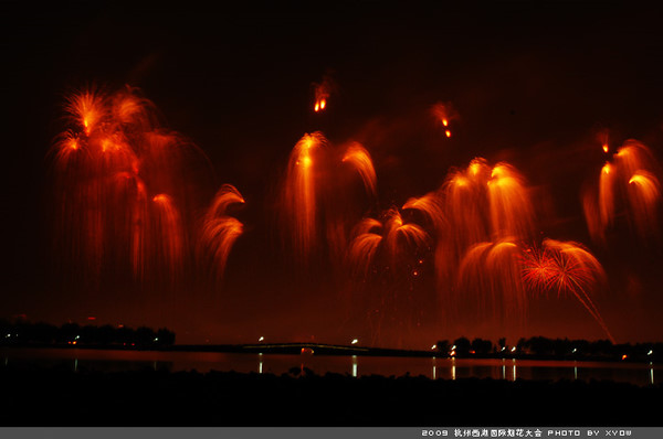 Fireworks lights the night sky and West Lake during a show of 2009 West Lake International Fireworks Fair in Hangzhou, east China's Zhejiang Province, Oct. 24, 2009.