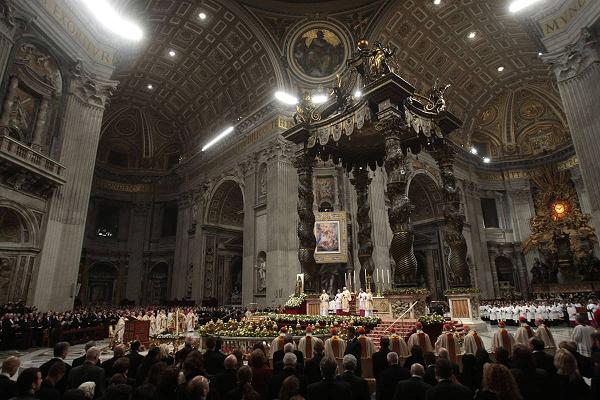 Pope(教皇) Benedict XVI celebrates Christmas Mass at St. Peter's Basilica(长方形廊柱大厅).