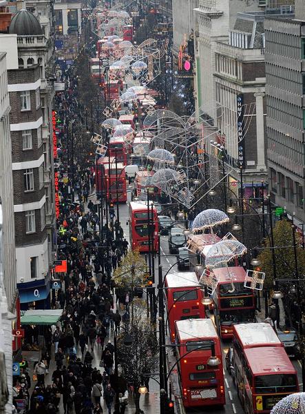 A sea of pedestrians(行人) walk along Oxford Street for their last chance at Christmas shopping in London on Thursday.