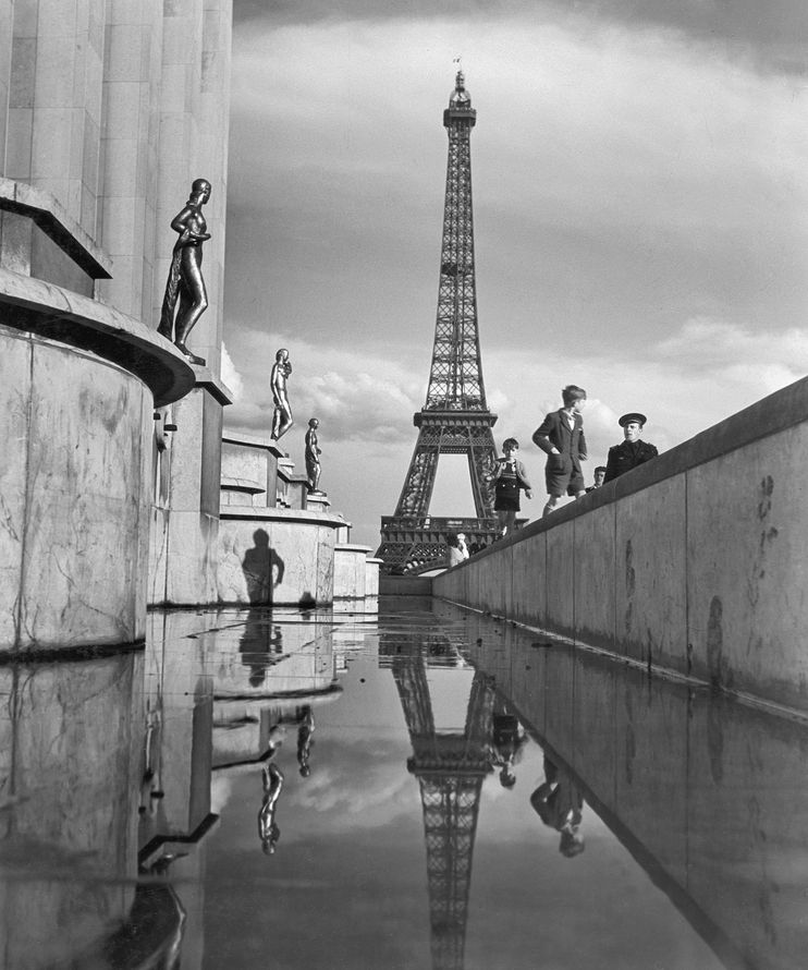 With the Eiffel Tower as backdrop, children sail toy boats in a pond in July 1936.