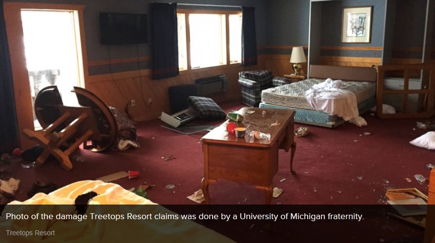 The Treetops resort hasn’t yet billed the fraternity for the damages, or made a decision about whether to seek criminal charges. According to Fitzgerald, there is a pending Michigan State Police investigation that could lead to criminal charges.