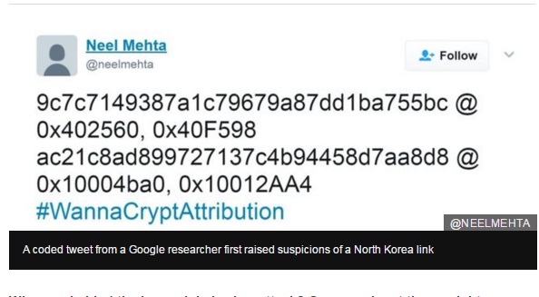Security experts are now cautiously linking the Lazarus Group to this latest attack after a discovery by Google security researcher Neel Mehta. He found similarities between code found within WannaCry - the software used in the hack - and other tools believed to have been created by the Lazarus Group in the past.